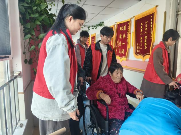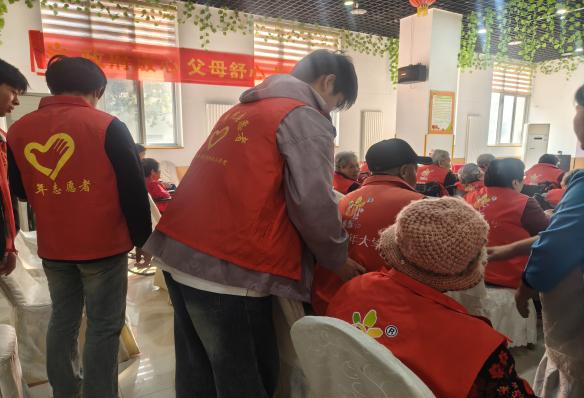 當(dāng)天下午,志愿者們一抵達(dá)養(yǎng)老院,便迅速分組投入到活動當(dāng)中。有人俯身傾聽老人們的人生故事,送上真摯的問候與祝福,在笑語盈盈間傳遞溫暖;有人推著輪椅,陪伴老人漫步于秋日柔和的陽光里,步履緩緩,時光仿佛也溫柔下來;還有人小心攙扶著長者,協(xié)助他們活動身體,一舉一動間盡顯耐心與關(guān)懷。整個養(yǎng)老院洋溢著歡聲笑語,沉浸在一片和樂融融的氛圍之中。